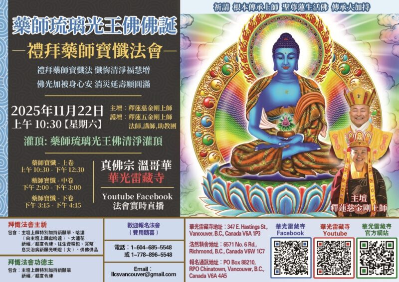 華光雷藏寺地址:347 E. Hastings St., Vancouver, B.C., Canada V6A 1P3